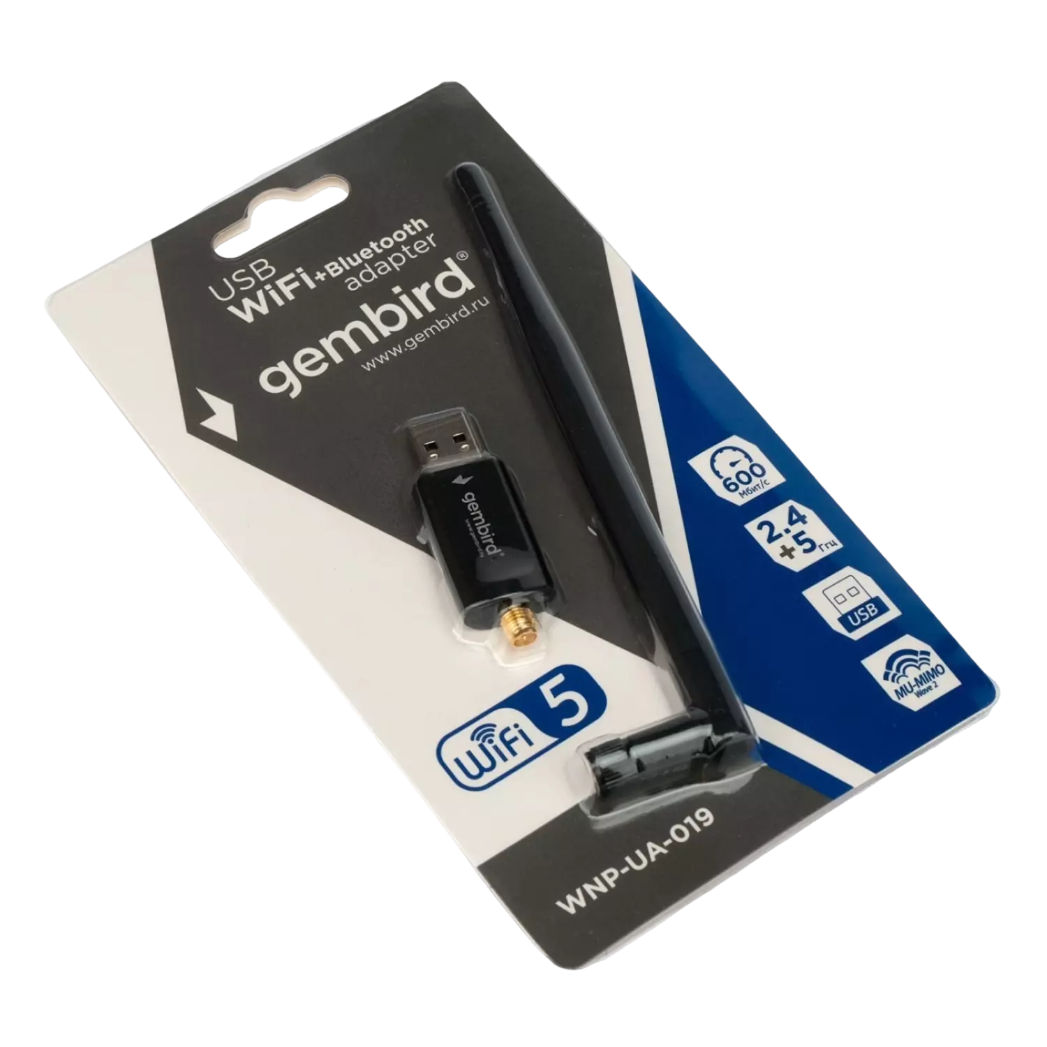 Адаптер USB Gembird WNP-UA-019 Wi-FiBluetooth 600Мбит, двухдиапазонный с антенной, MU-MIMO, USB