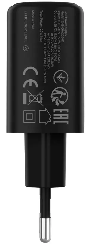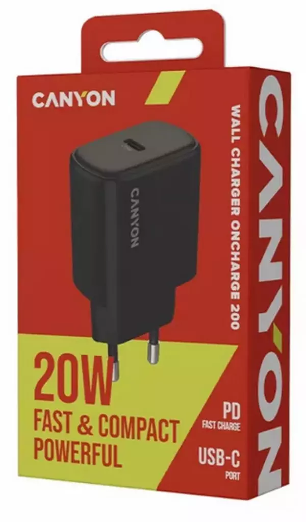 Сетевое зарядное устройство Canyon OnCharge 200, 20W 1xPD EU, Black